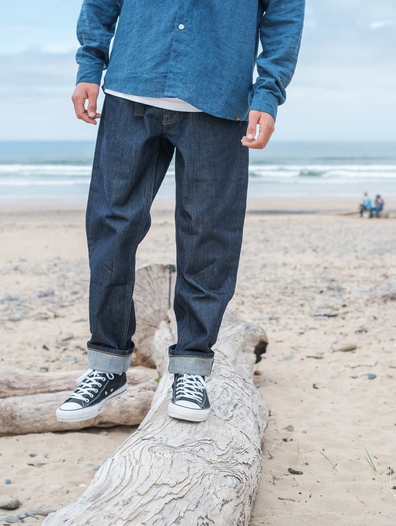If you're a denim geek, you'll know that traditionally a twill is woven either to the right hand or the left hand, which can cause tension in the fabric. It's that tension which can make the outside seam of a regular jean twist around to the front or back, after it's washed.