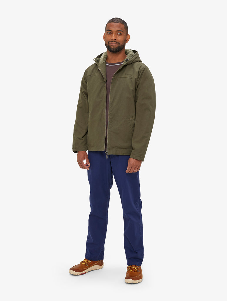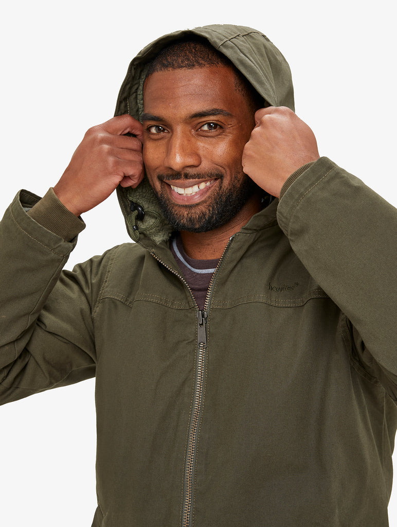 An all new hooded jacket with a rugged organic cotton canvas outer and a recycled sherpa fleece lining for outstanding insulation.